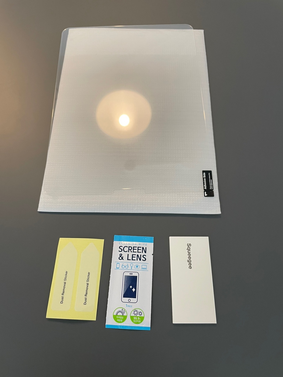 3. 1 Adhesive Side 필름을 제거하고, 필름을 제거한 면으로 액정에 붙인다.