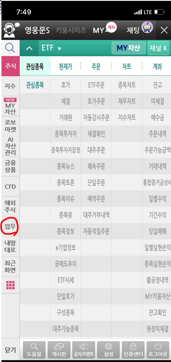 1. 영웅문 앱을 켠다